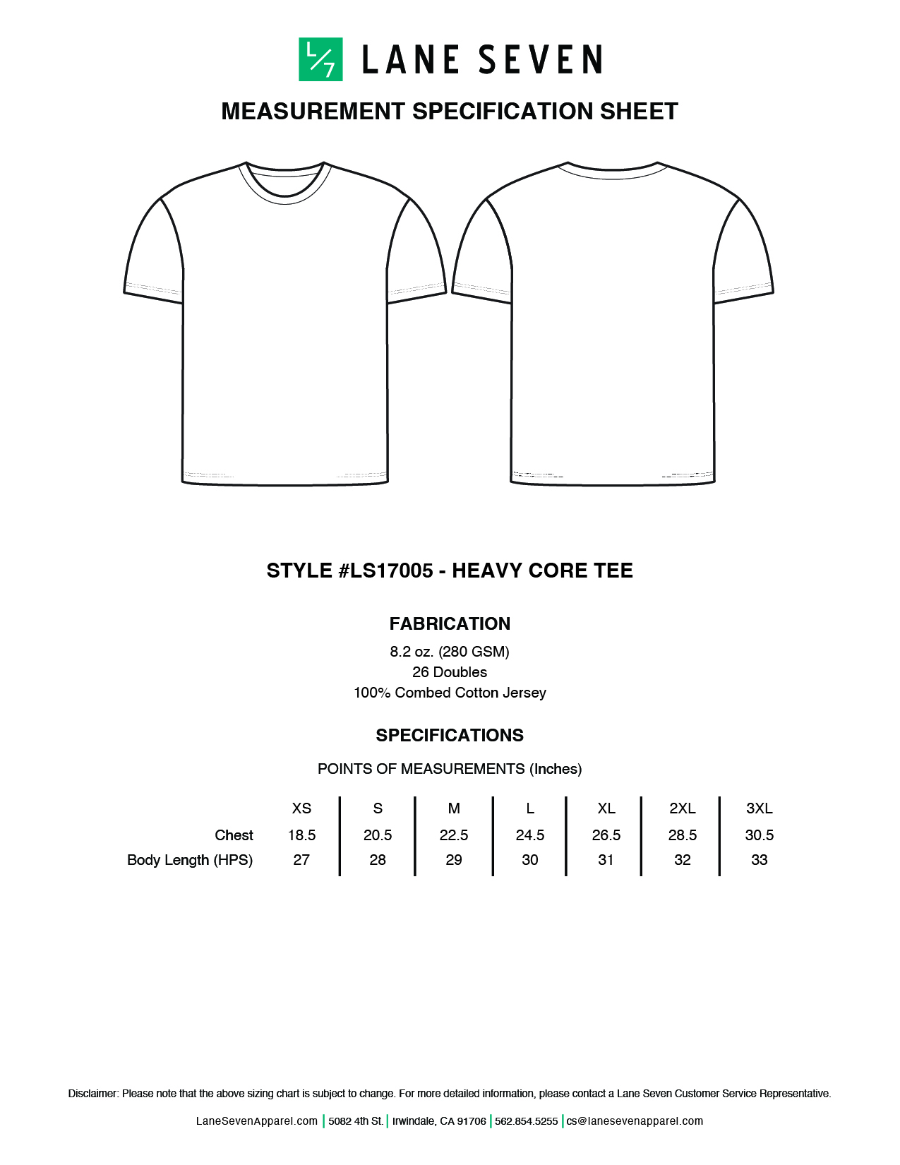 Heavyweight Jersey. Side-seamed. Double-need top-stitch on sleeve and bottom hem. Single-needle top-stitch on shoulder, armhole and neck seam. Tear away tags. Under 6% shrinkage.
