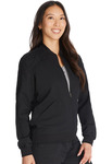 Our  contemporary fit zip front jacket features two welt pockets with decorative top stitching and shoulder yokes. Perfectly located at the neck we offer a rib knit collar, rib knit cuffs and rib knit waistband for needed comfort and sleeve strapping for added fashion. Dickies tonal woven label. Center back length: 24 1/2"